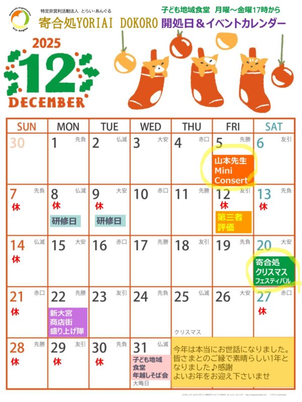 とらい・あんぐる『寄合処』開処日&イベントカレンダーを12月をUPします!