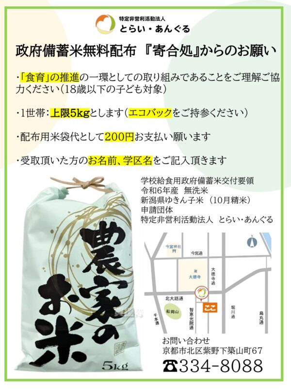 当初、9月に予定しておりましたフードパントリーの政府備蓄米12月10日以降からお渡し可能となりました。