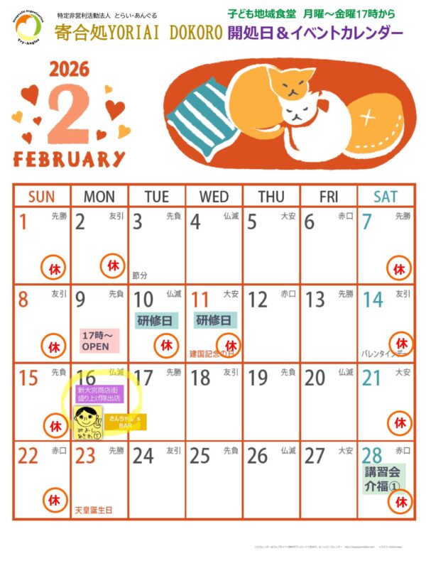 とらい・あんぐる『寄合処』開処日&イベントカレンダーを2月をUPします!